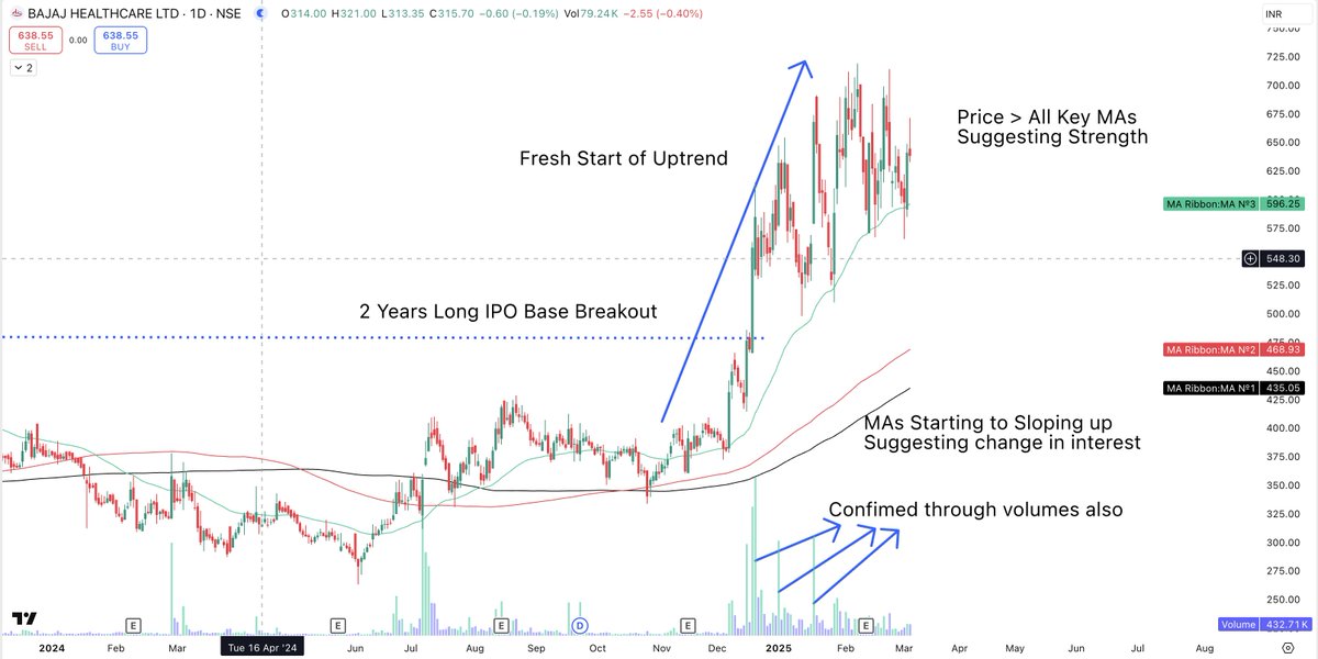 This is done so by ensuring the stock trades above key Moving Averages (50-day, 150-day, and 200-day SMAs) with those averages sloping upward📈