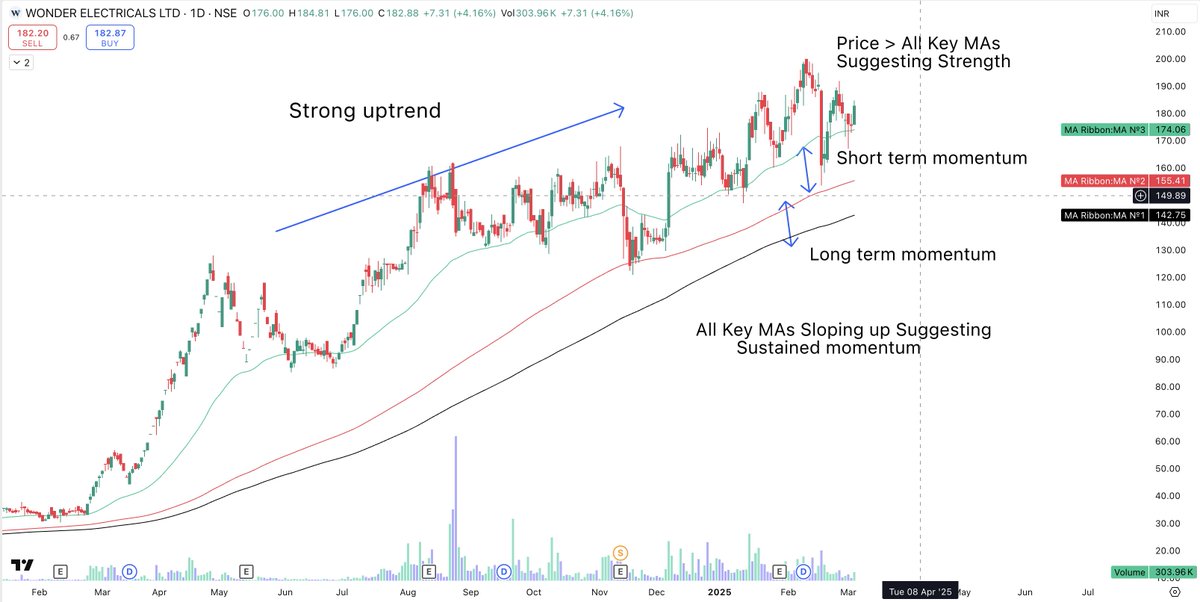 🔹 Ensures Uptrend of Stock with Strength and Momentum (Price & MA Criterias)