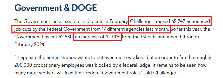 Challenger Gray specifically mentions @DOGE's cuts as a driver behind this trend.