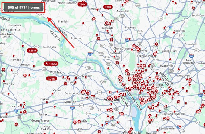 There are now nearly 10,000 homes for sale in the Washington, DC metro area.