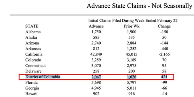In the last week of February ALONE, over 2,000 people filed for unemployment in Washington, DC.