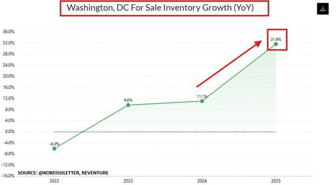 Washington DC for sale home inventory growth hit +31.6% year-over-year in February 2025.