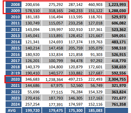 2020 is the only year in Challenger Gray data history to break 2 million job cuts. Image