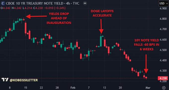 Interest rates are now down -60 BASIS POINTS in 6 weeks as DOGE cuts ramp up.