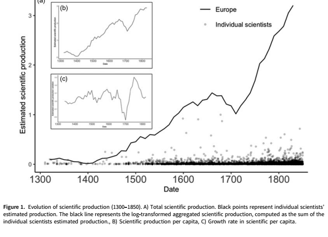 W długim terminie widać wyraźnie narastanie produktywności nauki w Europie Zachodniej - przede wszystkim w Wielkiej Brytanii, Niemczech, Francji. Włochy, Polska a nawet Niderlandy miały swoje złote okresy po których przyszedł relatywny zmierzch i ponowne odrodzenie,