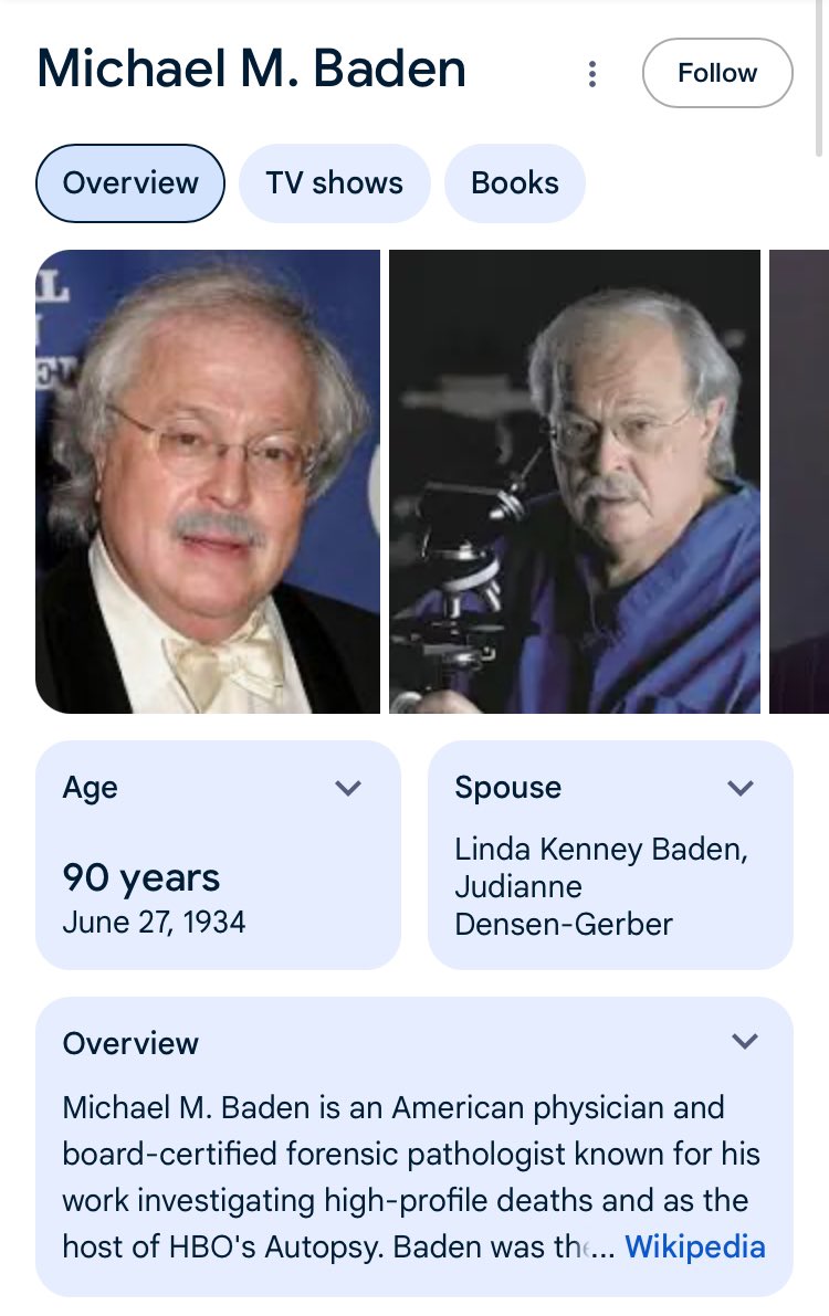 He has a history of doing second opinion autopsies, and in my view his opinion is designed to distract from the main narrative, but still lead you off track from the truth.