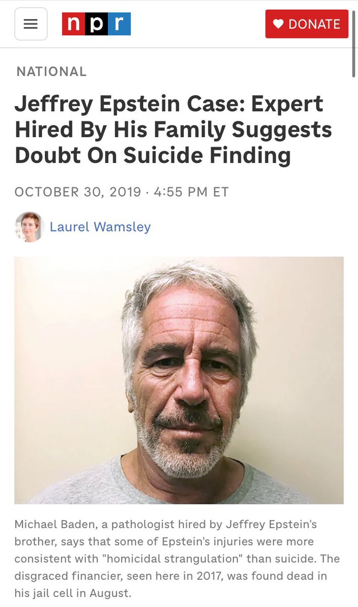 But wasn’t a 2nd autopsy done by a professional that said Epstein was murdered and not suicided?
