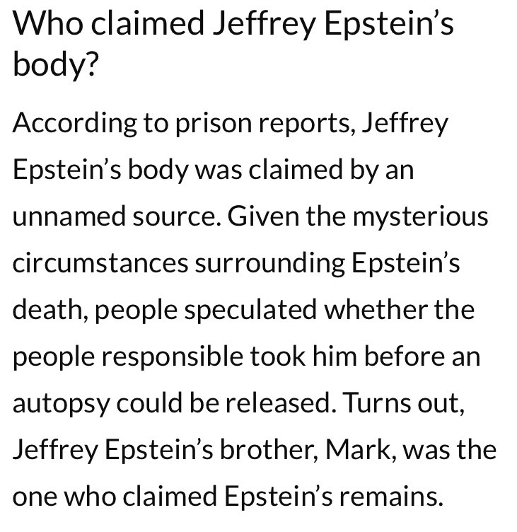 Which begs the obvious question, is Mark Epstein the only one who saw the “body” after the autopsy??🧐
