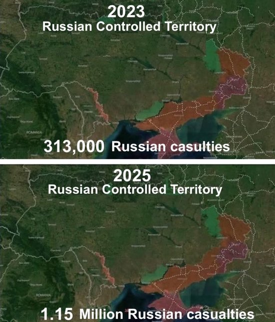 Russia’s full scale invasion was supposed to take 2 days, but we’re nearing 4 years. They’ve lost a million men. Their economy is in shambles.