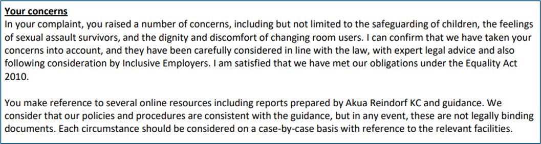 · missed the part where EHRC guidance on single sex facilities states that: “The Equality Act allows for the provision of separate or single sex services in certain circumstances under ‘exceptions’ relating to sex”.