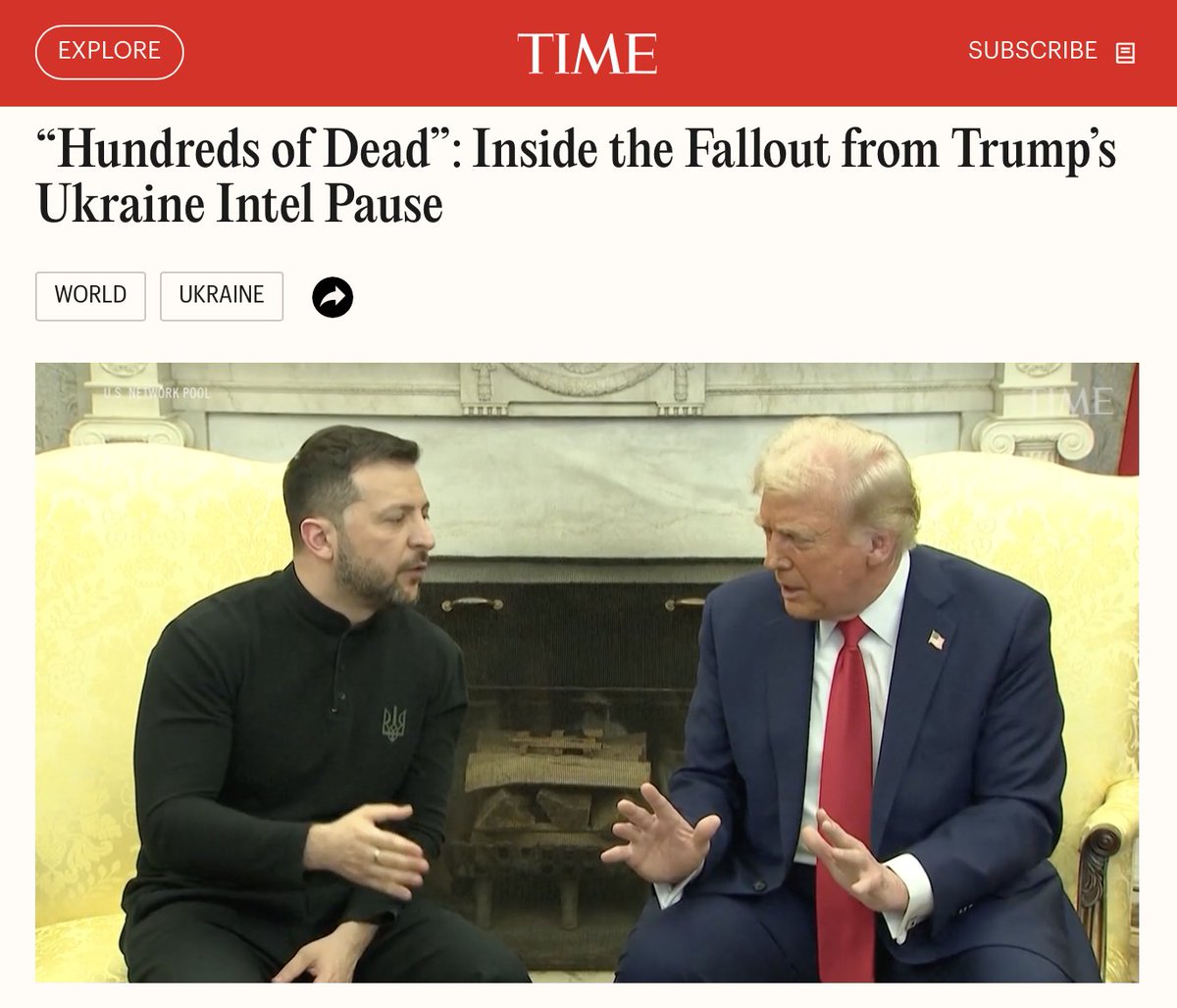 TIME: US is trying to force Ukraine to accept Russian peace terms by cutting intelligence.