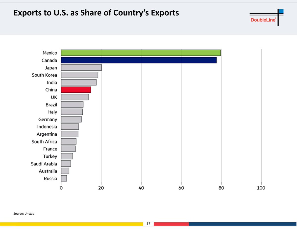 Gundlach: Mexico has 80% of exports to U.S., 70%+ for Canada. Trump has a point about seeking reciprocity between the U.S. and these trade partners. Image