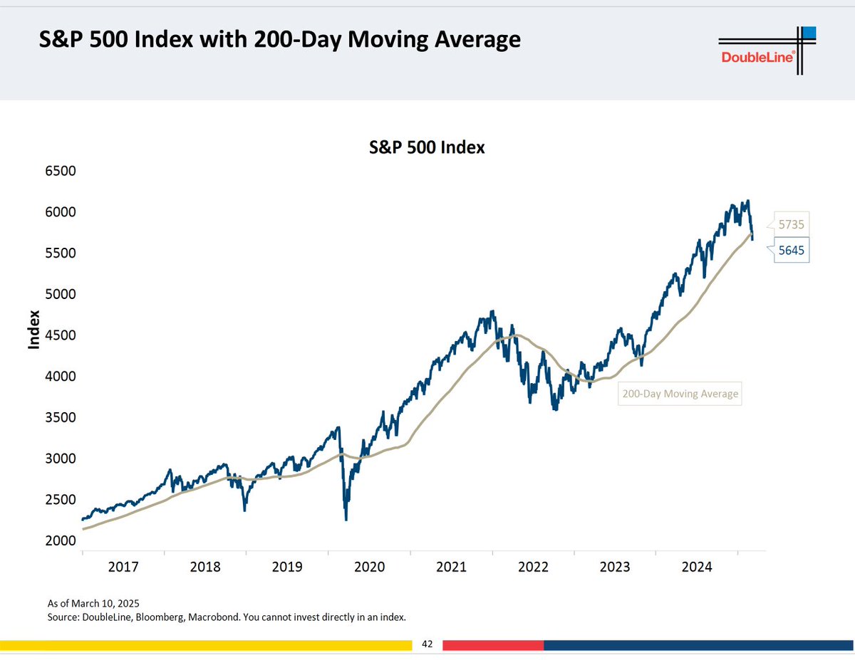 Gundlach: S&P 500 had been way above its 200 day moving average. It is now below the 200 DMA.