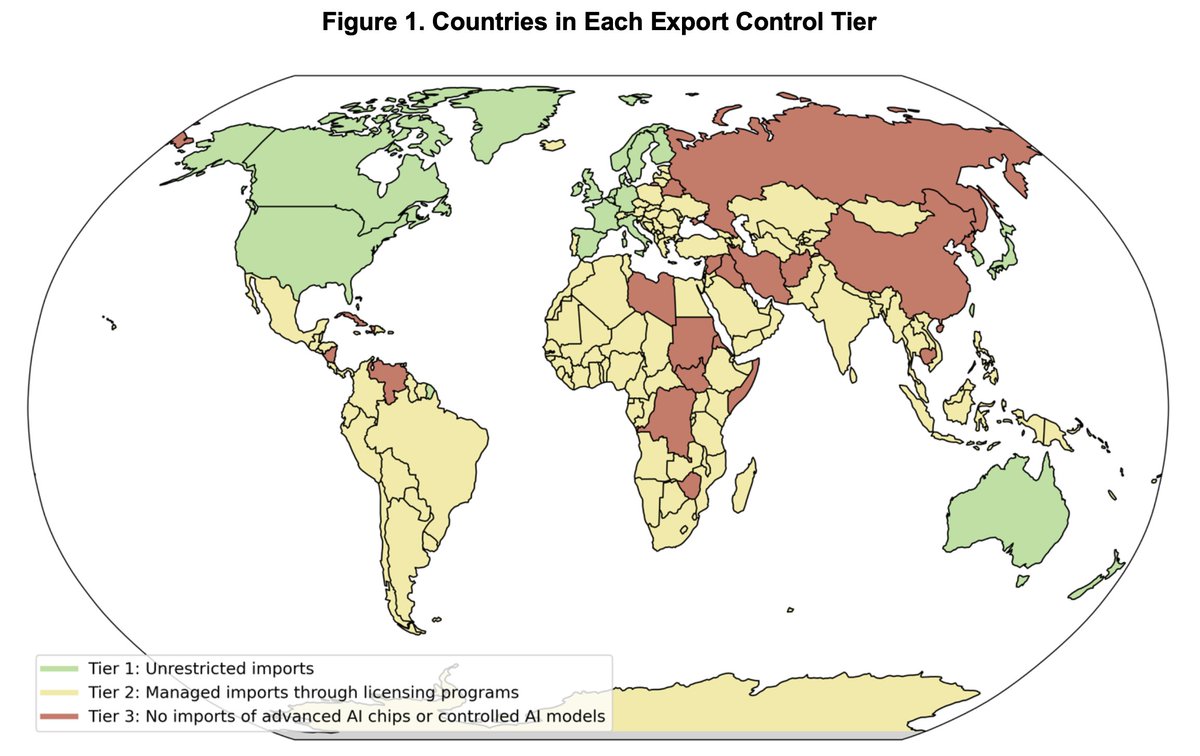 Three country tiers determine access rights and security requirements: Countries in Tier 1 have no import restrictions. Tier 2 countries can receive exports only through authorized companies or obtained licenses, while Tier 3 countries face continued restrictions. 3/