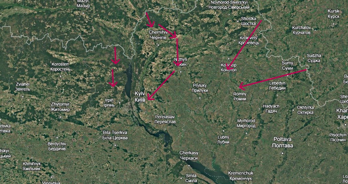 (13) The Russian plan is to besiege the city of Kiev, attacking from the flanks and putting the city into a pincer, both drawing Ukrainian units from Donbas and achieving a political decapitation strike, forcing the Ukrainian regime to enter negotiations.