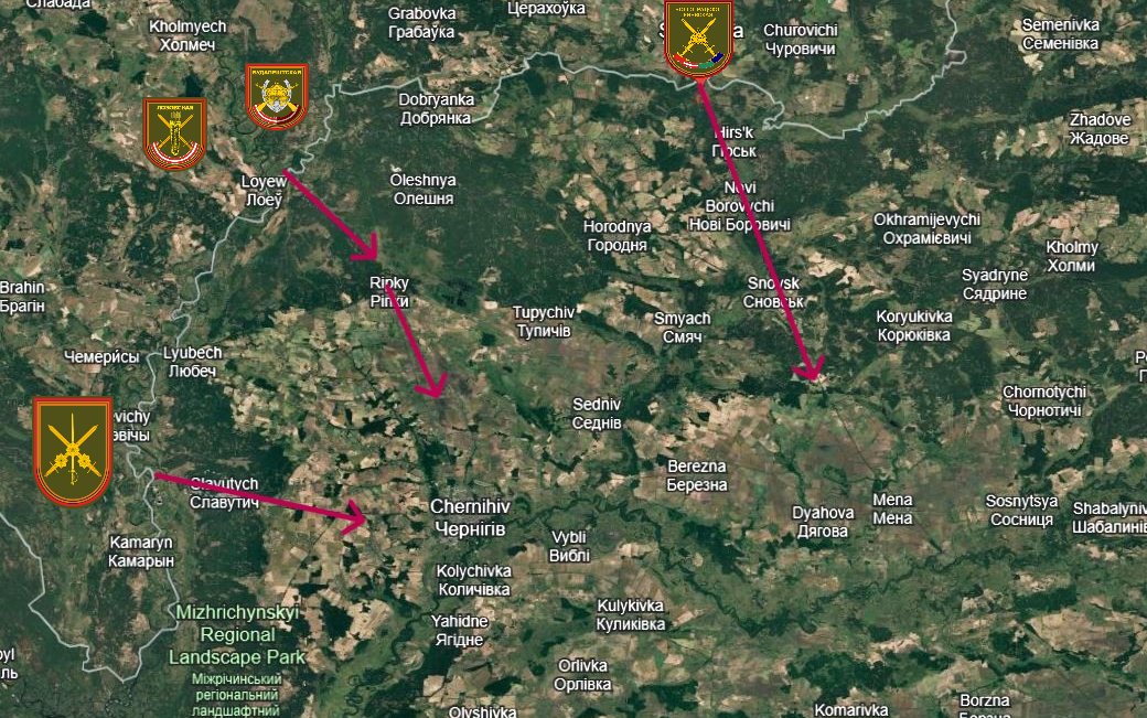 (24) The town of Chernigov, located in the east, is vital to envelop Kiev entirely, so Russian forces were forced to either bypass or capture the city. 4 Russian brigades from 3 directions head toward the city.