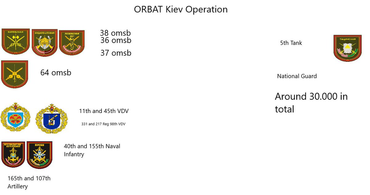(16) the 11th Guards Airborne, the 45th Spetsnaz, and several regiments from the 98th Air Assault Brigade responsible for the Gostomel Landing, the 40th and 155th Naval Infantry, and the 165th and 107th Artillery Regiments.