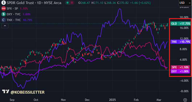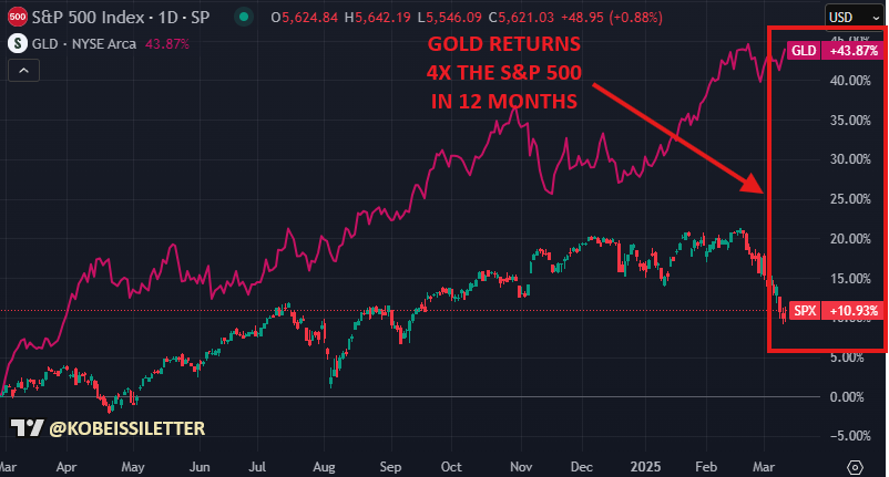 In fact, while the S&P 500 has risen +11% since March 2024, gold is up nearly +44%.