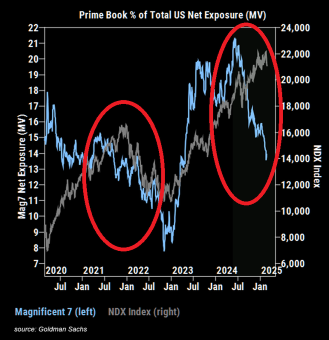 Heading into 2025, hedge fund exposure to Magnificent 7 stocks fell to a 22-month low.