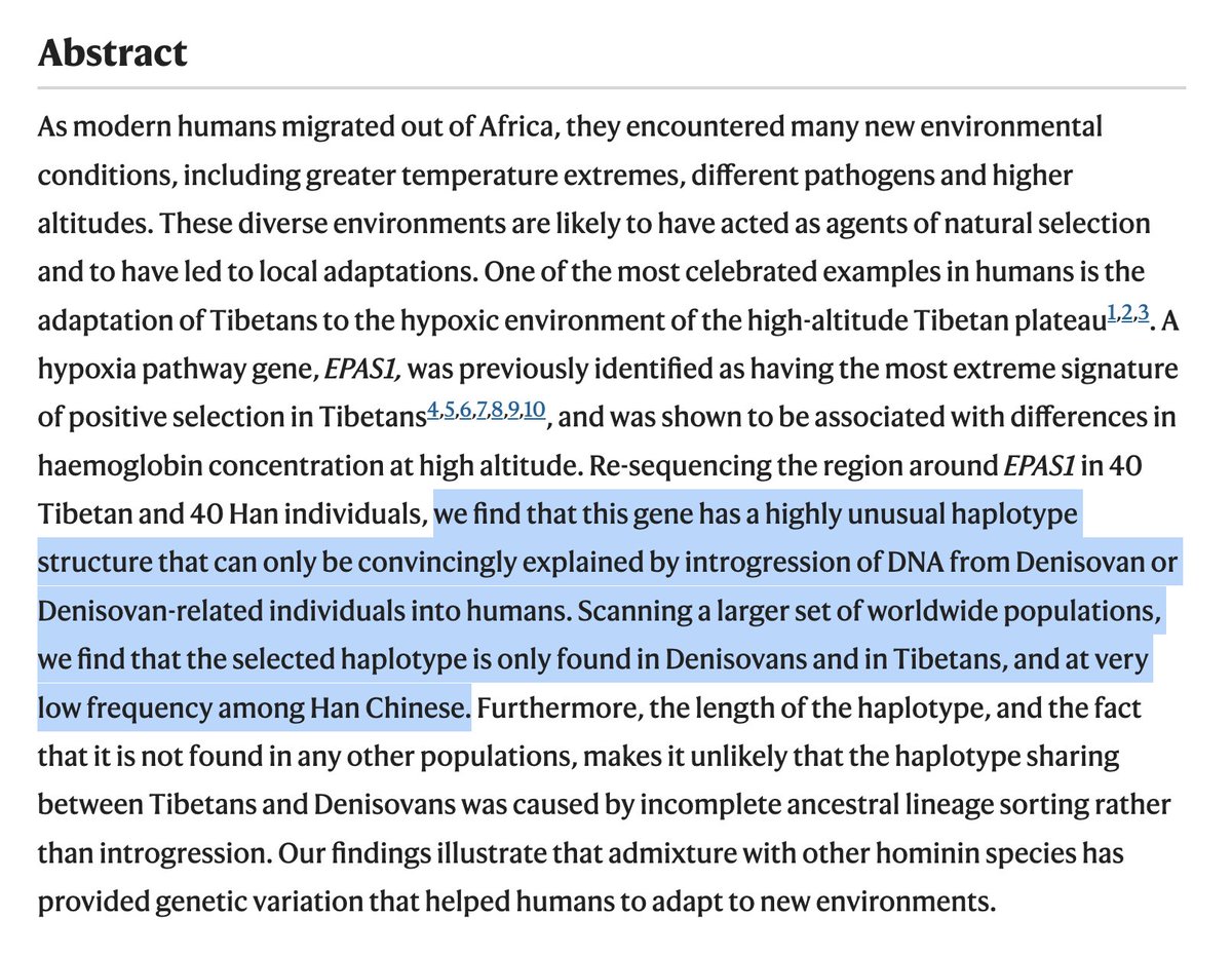 POV: It is 6800 B.C. in a Himalayan valley 3600m above sea level. You are a proto-Sherpa guy w EPAS1 gene mutation for improved blood oxygen transport at high altitudes, introgressed from one of your Denisovan ancestors. You have more energy and can climb further & herd yaks far longer than other dudes, who are dizzy & vomiting from altitude sickness. Local recently migrated Yellow River Farmer girls notice your superior stamina. You are about to experience natural selection