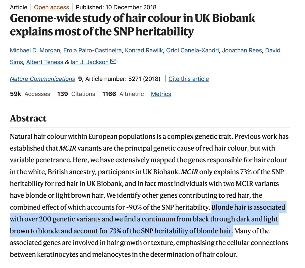 *ackshually the low UV absorption hypothesis for MC1R variant was found to be unlikely. there is selection against this trait in Africa due to high UV, but outside it may just be genetic drift. still sexual selection by gingerchasers is a plausible cause sciencedirect.com/science/articl…