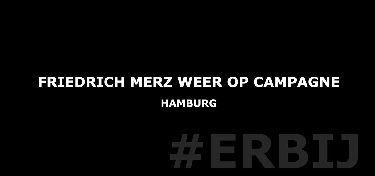In Hamburg. Hier zijn dit weekend verkiezingen voor het bondsland. En dus weer campagne, een week na de Bondsdagverkiezingen. Daarom Friedrich Merz in een cruiseterminal. #draad #erbij #live