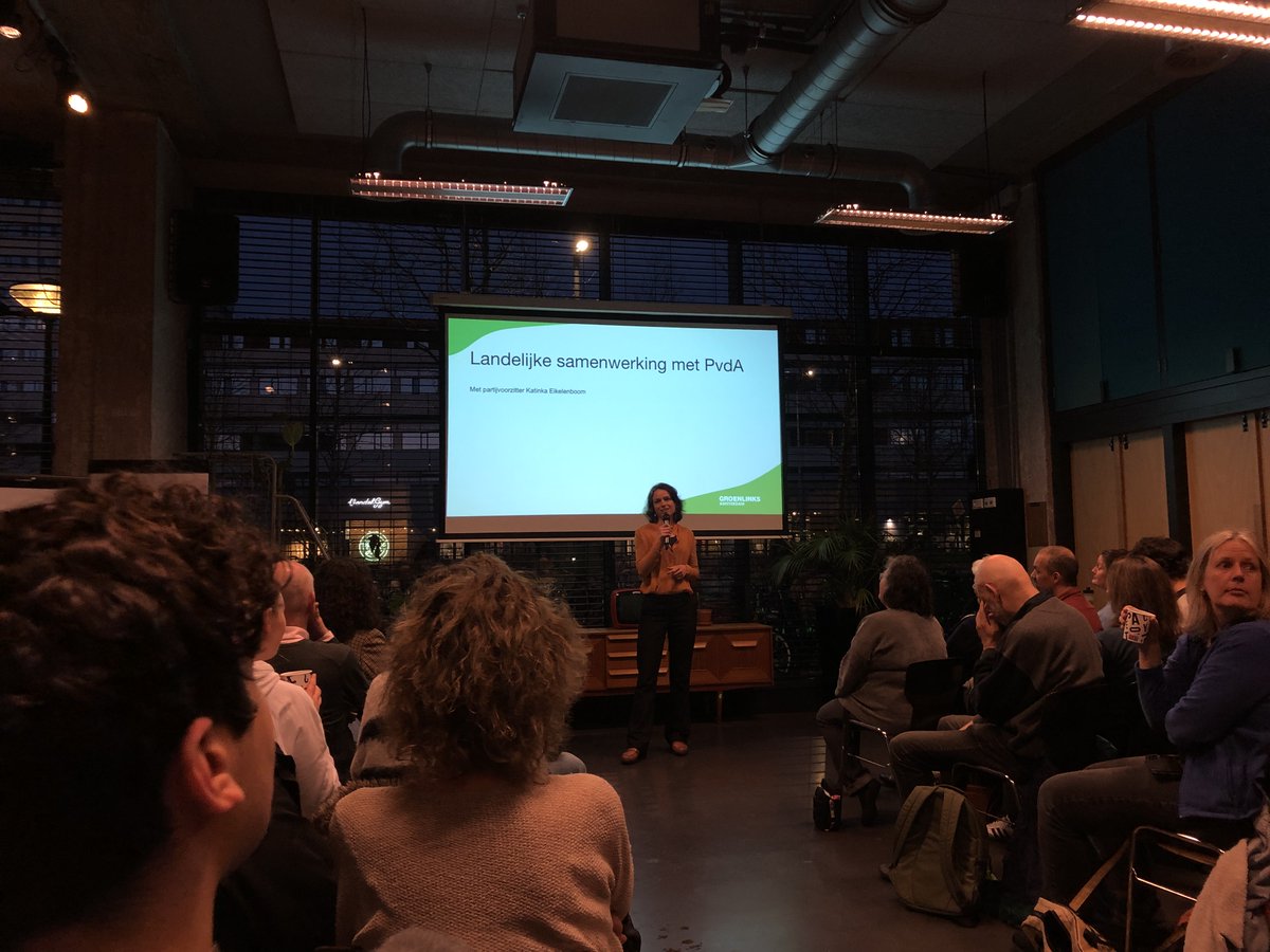 In Amsterdam bij de ledenvergadering van GroenLinks. In de aanloop naar de gemeenteraadsverkiezingen en een referendum over partijfusie met de PvdA. #draad #erbij #live