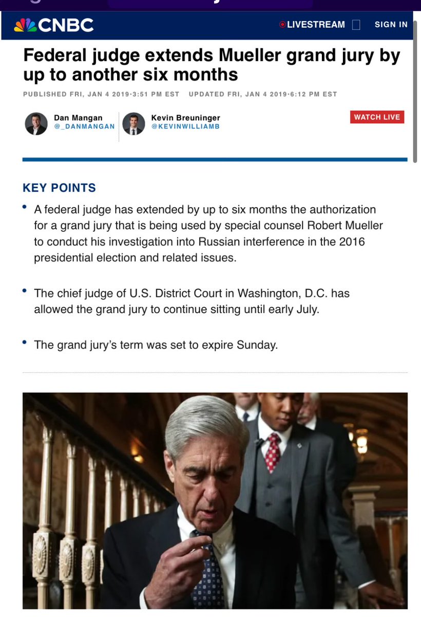 “I can confirm that grand jury 17-1 has been extended, can continue to sit,” said Lisa Klem, administrative assistant to Judge Beryl Howell, chief judge of U.S. District Court in Washington, D.C.