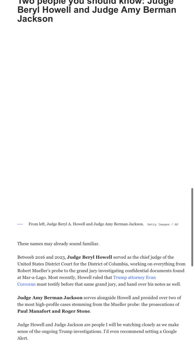Reading up, I’ve realized that Howell has been involved in just about anything bad that happened to Trump or his admin. She oversaw the Mueller grand jury, Giuliani, Mar-a-Lago grand jury, and so much more!