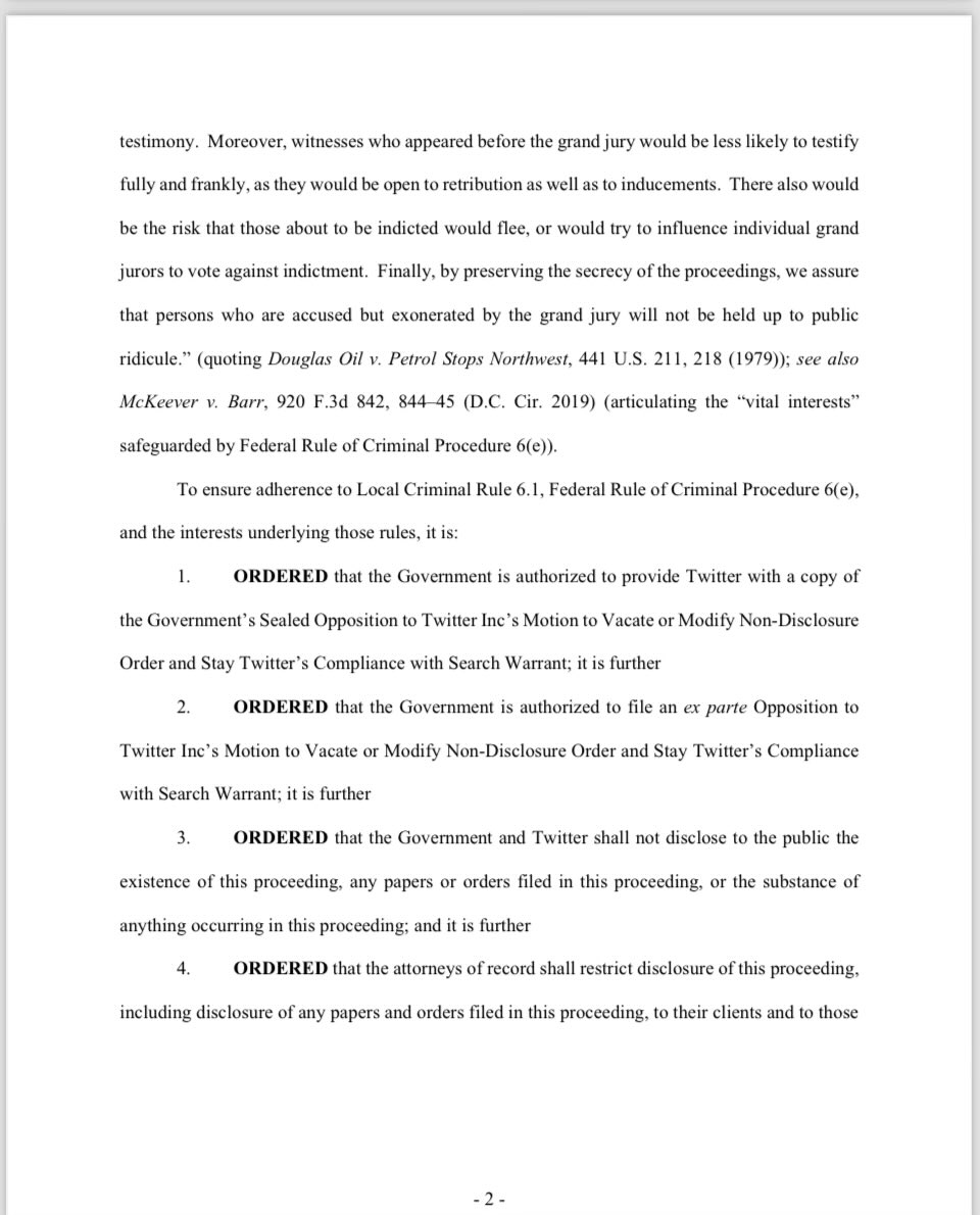 Judge Beryl Howell had the order for Trumps Twitter messages, and more, hidden from all.