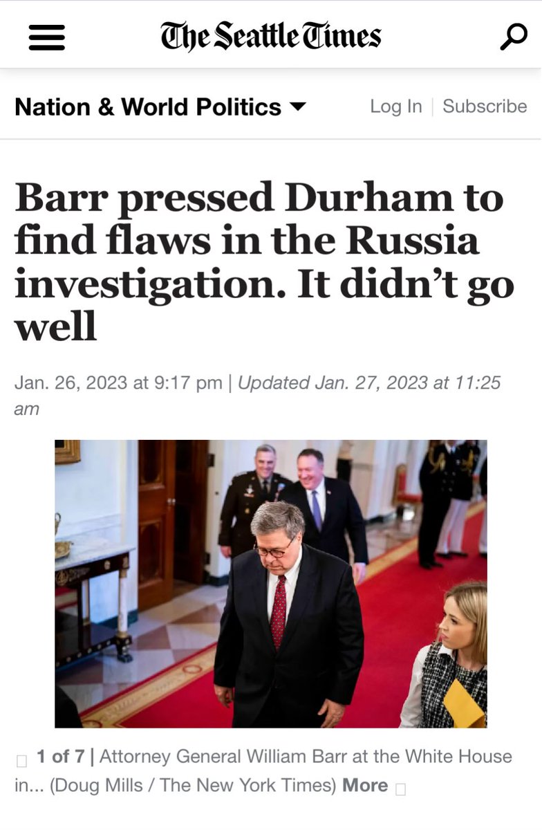 But Howell decided that the Russian memo was too weak a basis to intrude on Benardo’s privacy, they said. Durham then personally appeared before her and urged her to reconsider, but she again ruled against him.”
