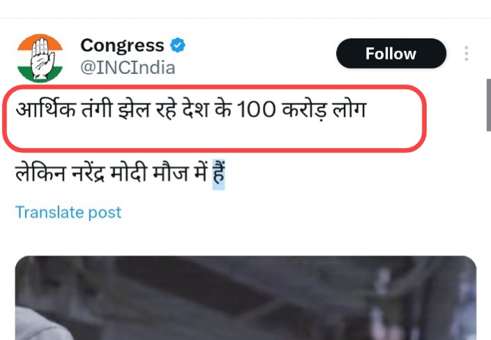 Latest example is series of posts from Congress's Social media handles where they claimed 100 crore people of India are in bad financial condition and don't have money to spend