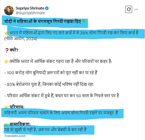 latest one is this post of Supriya Shrinate where she posted about Indian economy with misleading claims