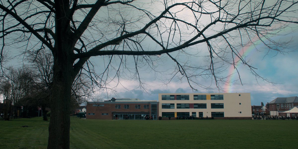 There wasn’t actually a window there. It was taken out and put back in using VFX. One of the camera operators was in the classroom, then when Ryan jumped out of the window, the other operator – who was crouching on the other side – took the camera and continued the chase.