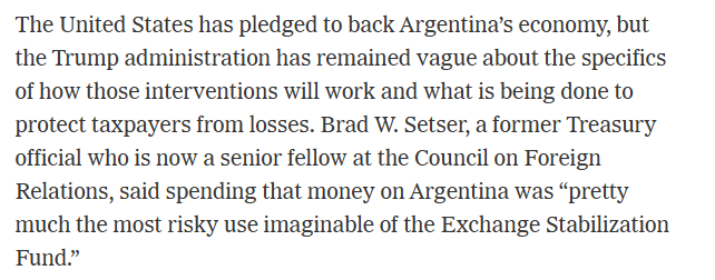 “Were the United States to offer Argentina a longer-term support package to back an unsustainable exchange rate, that would be a major folly and waste of U.S. taxpayer resources"