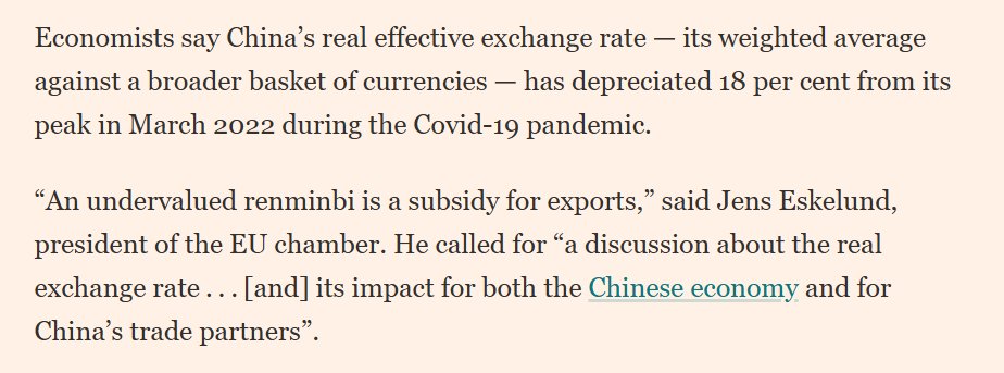 The IMF has lagged on this issue, not led ... and it still isn't quite calling for a nominal appreciation (though Georgieva may have hinted at the need for nominal appreciation to offset inflation differentials). The EU Chamber is more explicit (from the FT)