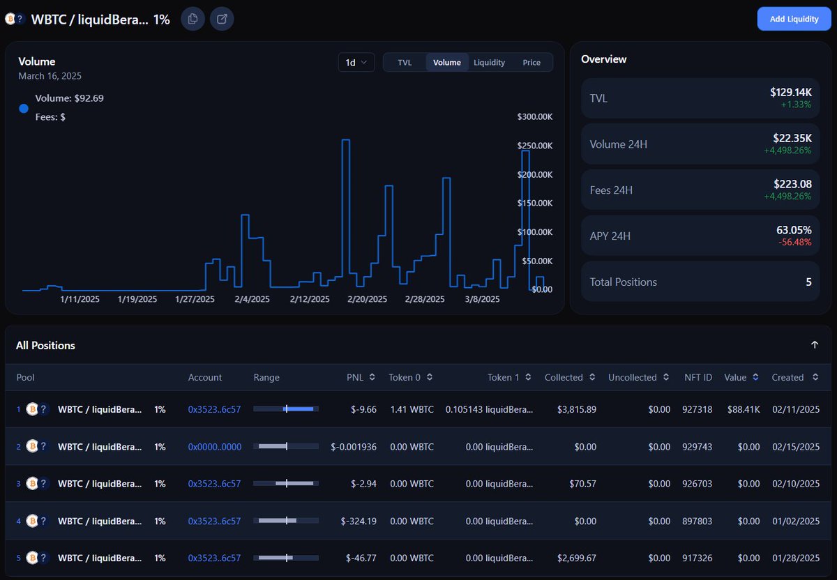 The caveat, of course, is that you'd have to either put buy-side liquidity in WBTC and wait for more sell pressure to enter, or buy some liquidBeraBTC from this 1% fee tier to enter, which may eat the later gains.