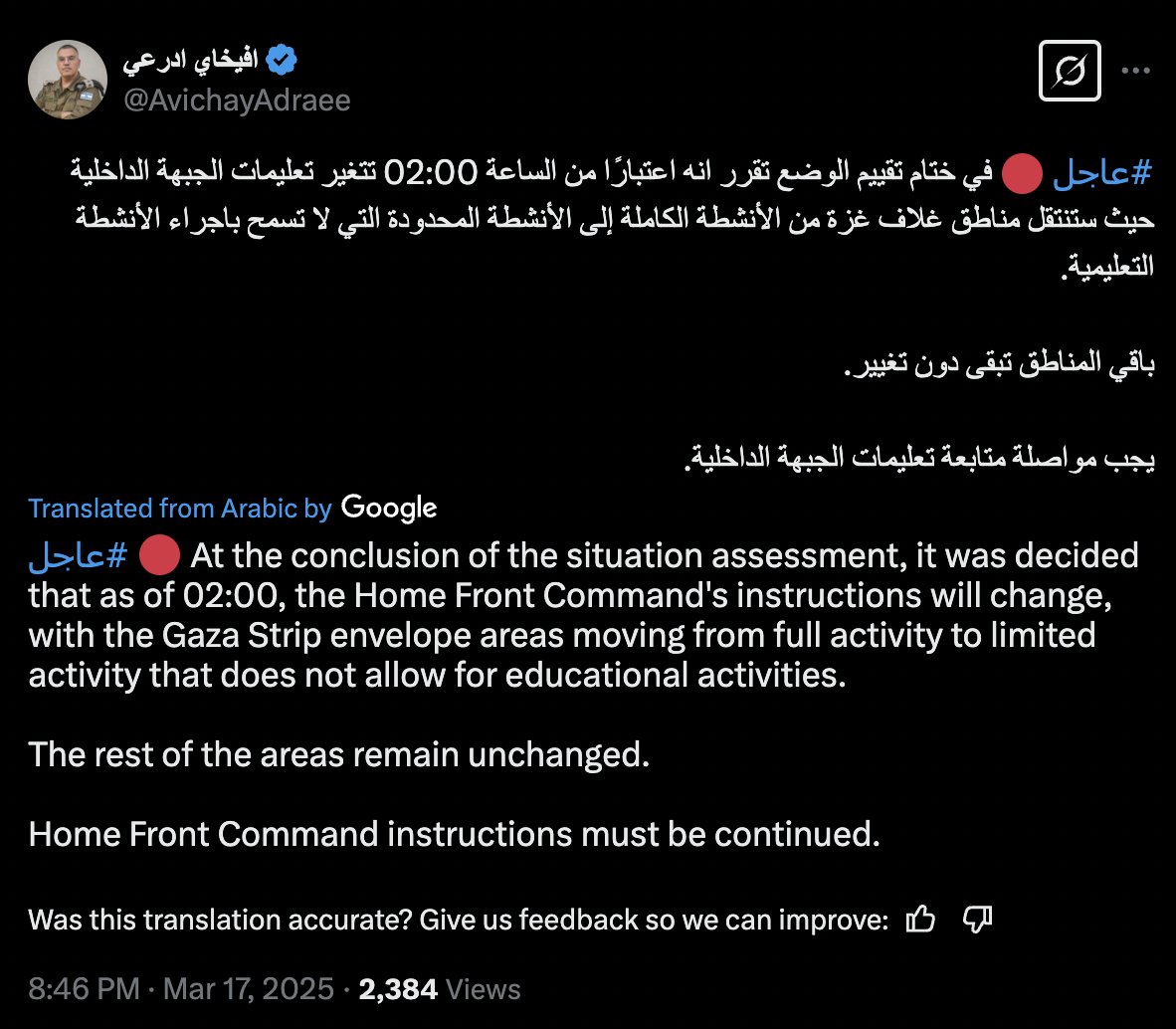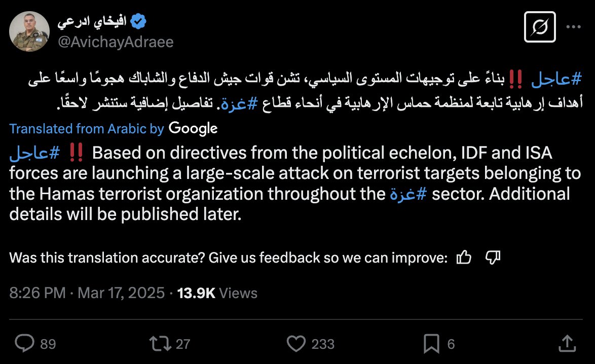 This is the IDF's Arabic spokesperson 3 minutes ago. I have no idea what he is saying.