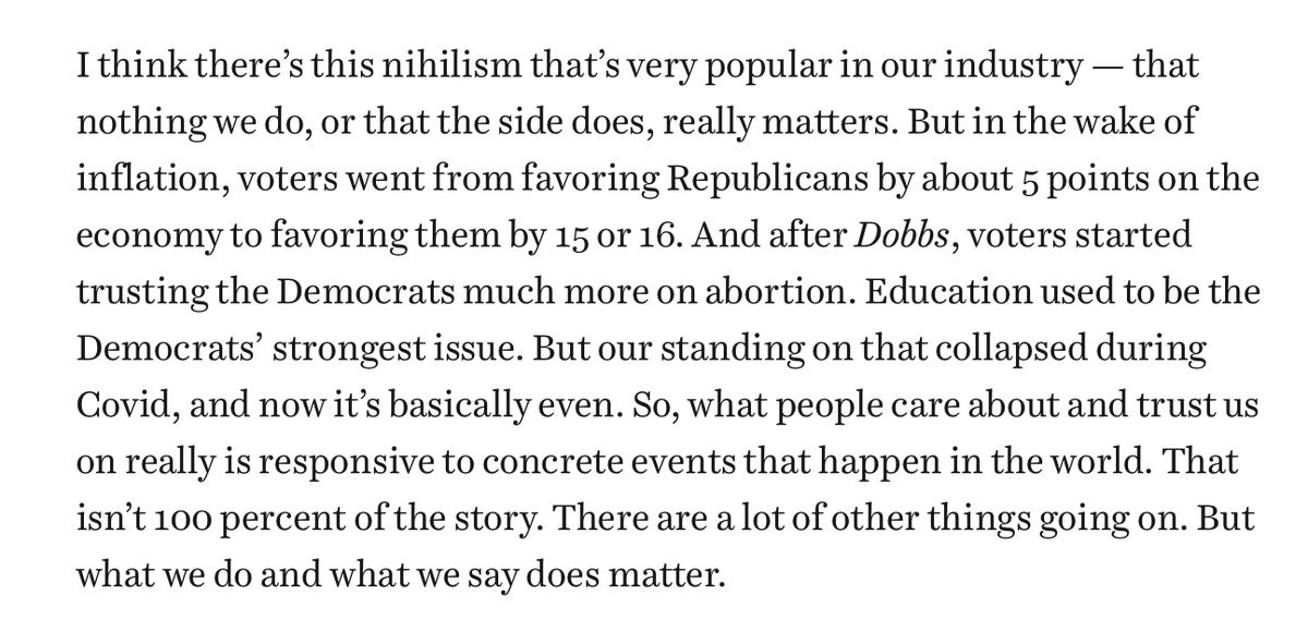 @davidshor 5) One point Shor emphasized: Nihilism about electoral politics is not justified. "lol nothing matters" may feel true. But voters do sometimes respond to changes in reality and positioning vox.com/politics/40336…