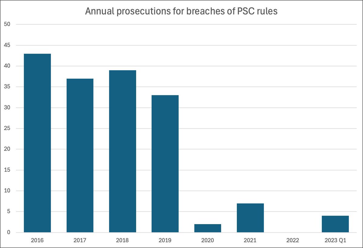 But a common approach - sometimes an error, sometimes intentional, is to file a foreign company as the PSC. So, in the oligarch example, the Panama company would be listed as the PSC. That's unlawful.
