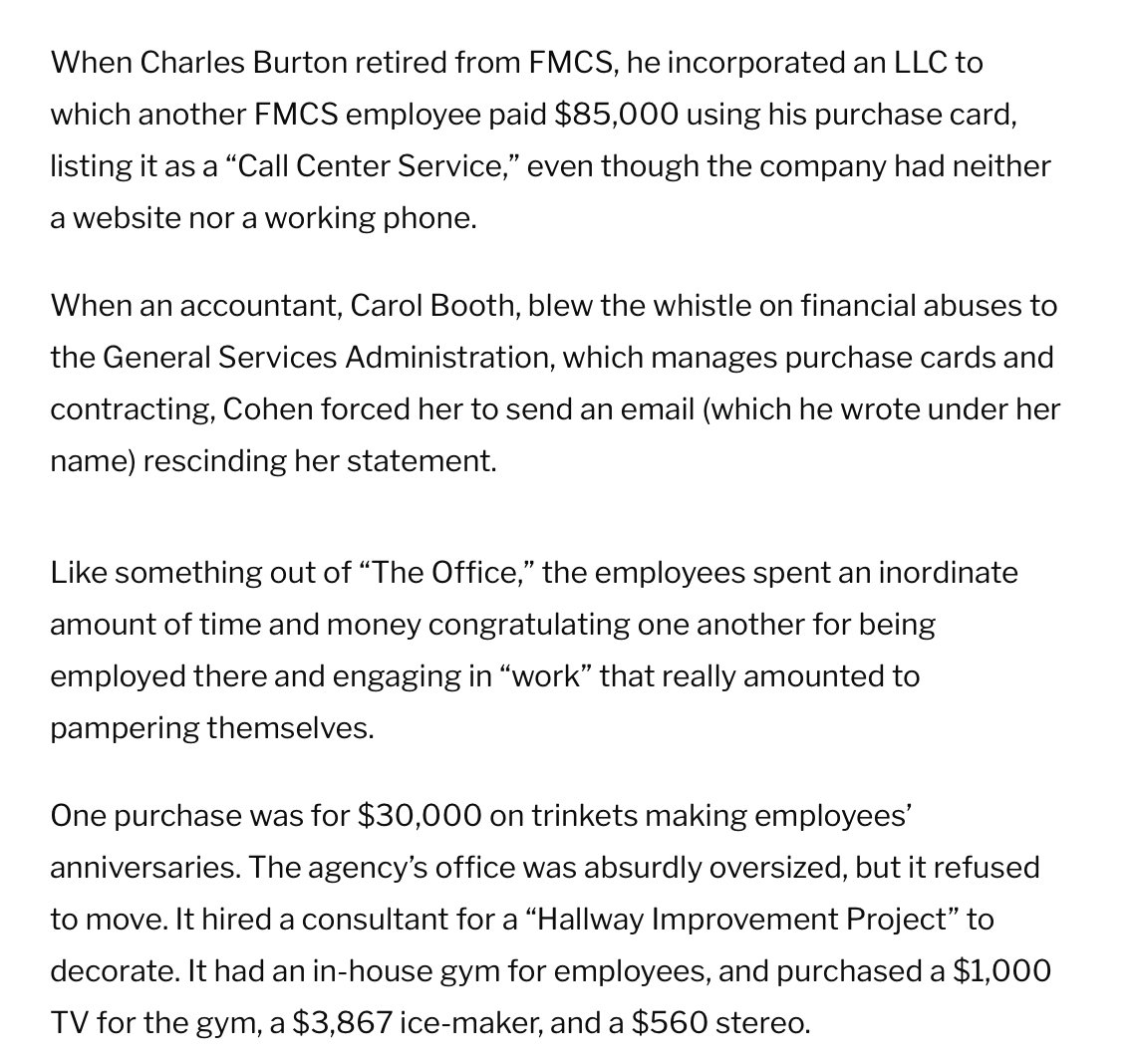 Its preposterously entitled and audacious employees even leased a BMW with a government card. When investigators & auditors sounded the alarm about blatantly illegal conduct, FMCS fired THEM!