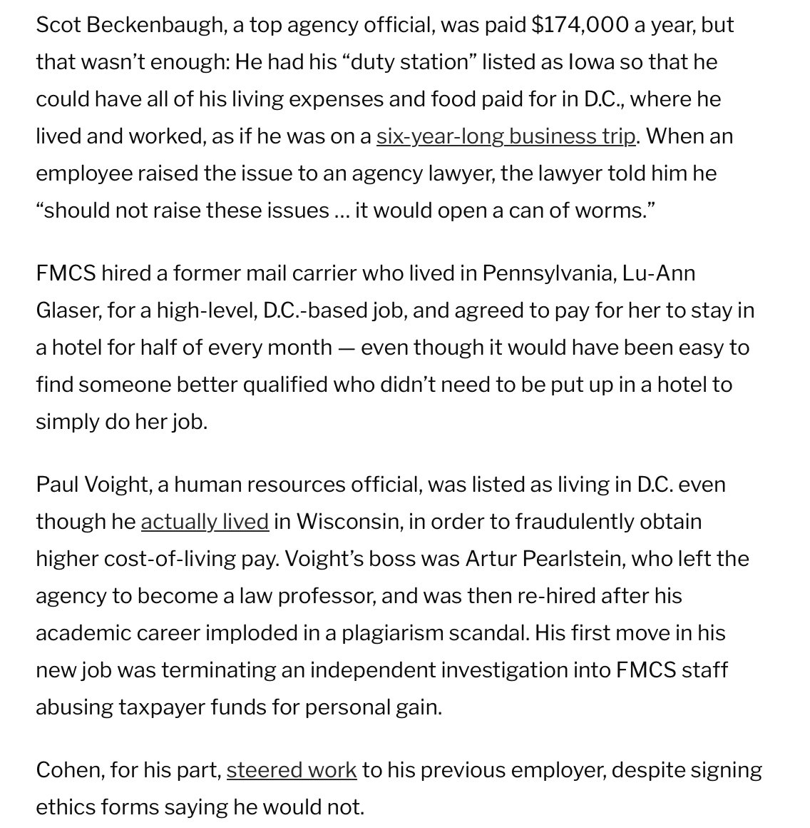 FMCS existed as a slush fund for employees to live luxury lives. There was no expense they wouldn't bill to the government. One charged the feds for his personal storage unit, used to store photo albums of his dog Buster, even after he retired.