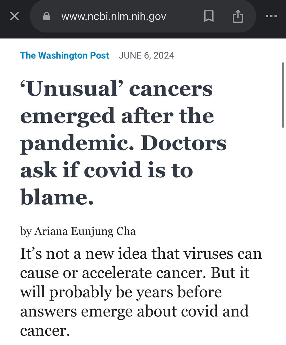 In 2023, studies found one of the most aggressive and deadly cancers around—pancreatic cancer—is the most likely cancer to occur following Covid infection. The information is here, we’ve had it for years. No one wants to pay for this, so the public cannot be told.