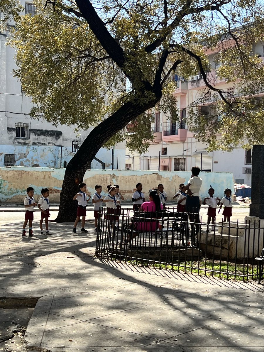 مدرسهی کوچکی این بغل بود. معلم داره توی یکی از میدونهای شهر به بچهها تمرین ورزشی میده. احتمالا به این خاطر که حیاط نداشتند!