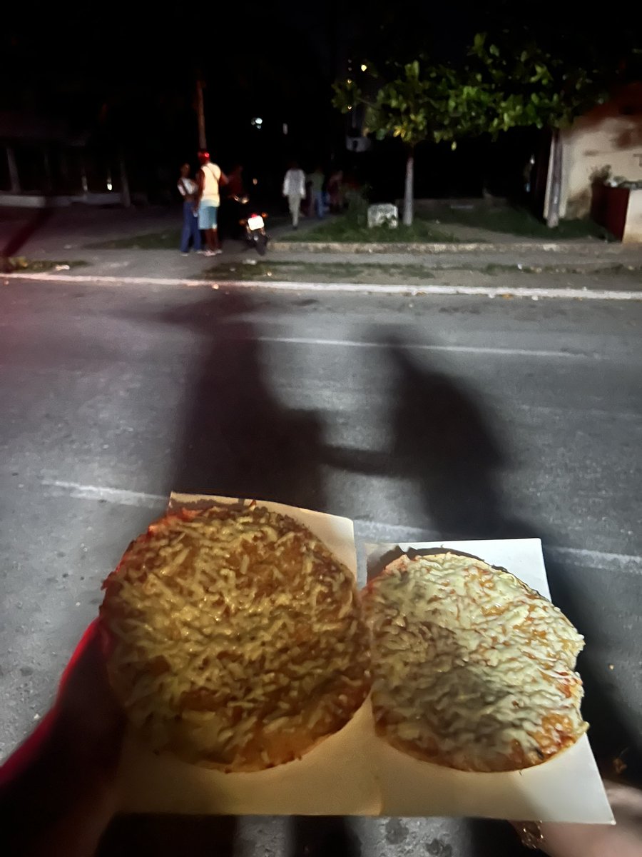 یک شب که برق قطع بود، وسط تاریکی رسیدیم به این پیتزافروشی محصور که با ژنراتور روشن بود و مردم عین بید دورش حلقه زده بودند. پیتزا ۱۹۰ پزو (تقریبا ۵۰ سنت)! اگر پنیر یا سوسیس یا چیز دیگری هم بخوای به ازای هر کدوم حدود ۲۰ سنت میدی!