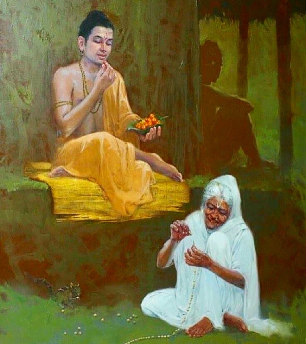 Shabari, innocent and full of faith, asked, “When will you come back?” Maharishi Matanga, who could see the past, present, and future, knelt before her and bowed.