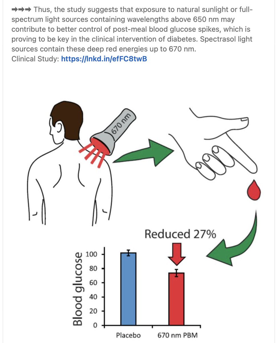 Red light, which is abundant in natural sunlight (especially at sunrise and sunset), may enhance mitochondrial function, improving glucose metabolism. This is a decentralized, non-pharmaceutical approach to managing diabetes, contrasting with centralized medicine’s focus on drugs like metformin & ozempic and all their side effects.