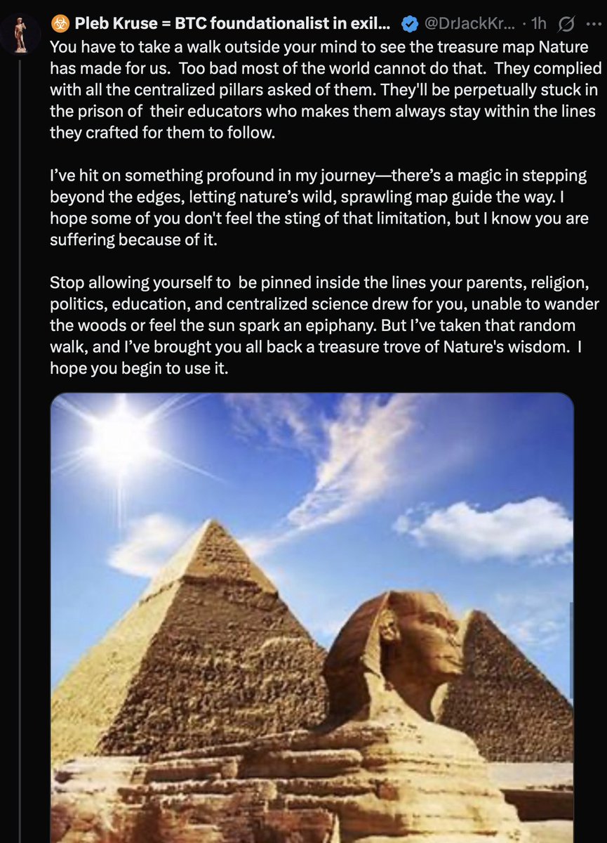 We've lost our way. The "ancient meme" suggests to you all that the idea of prioritizing natural light is a timeless truth, encoded in cultural symbols like the Sphinx, that modern society has forgotten or ignored.