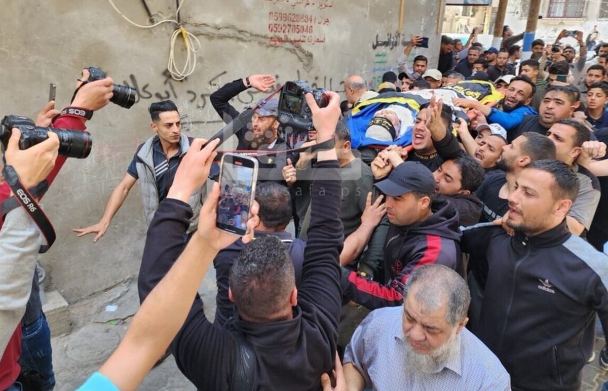This is an image from her uncle's funeral - and the man in the blue-grey shirt in the bottom right corner leading the procession - is Afnan Al-Ghannam's father.