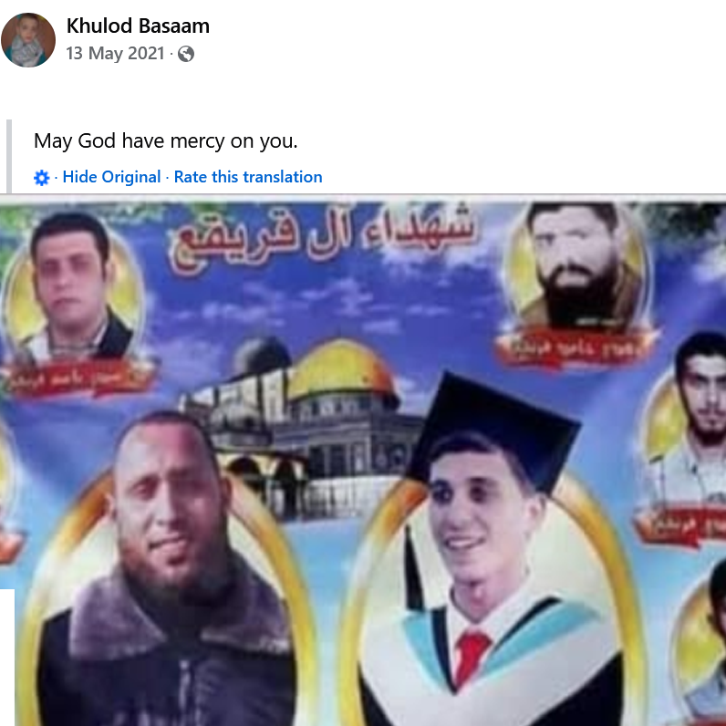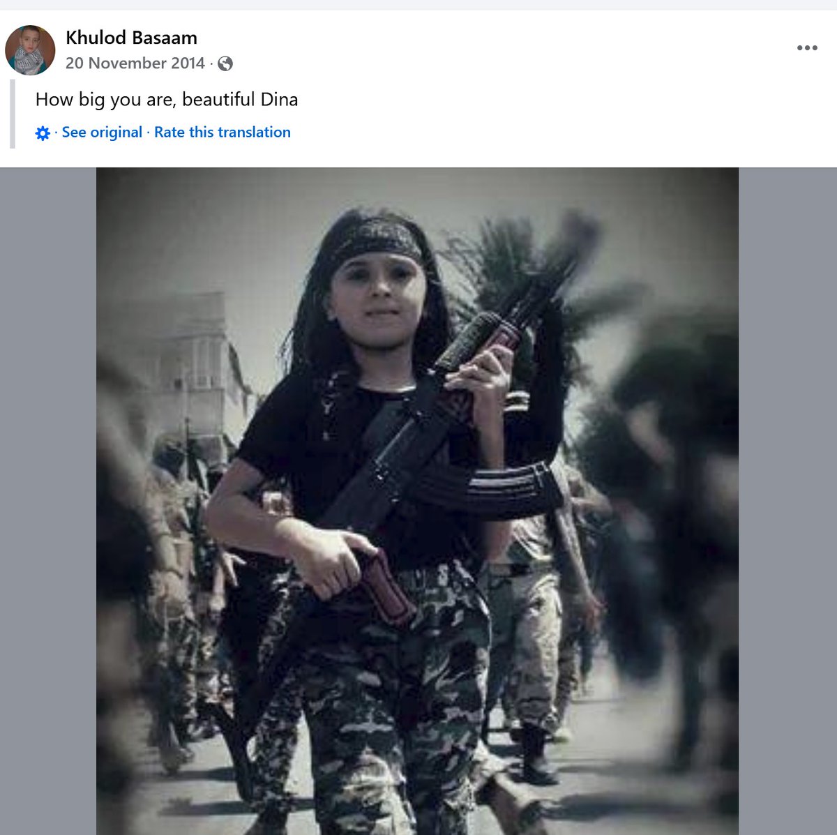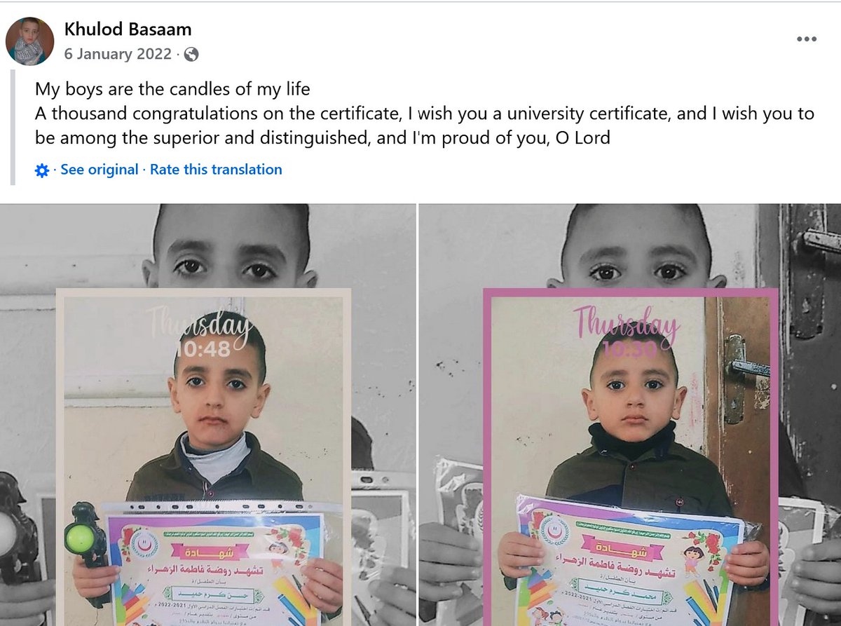 Her name was Kholoud Bassam Quraiqa (Hamid). Here she is posting about Hassan and Mohammed
